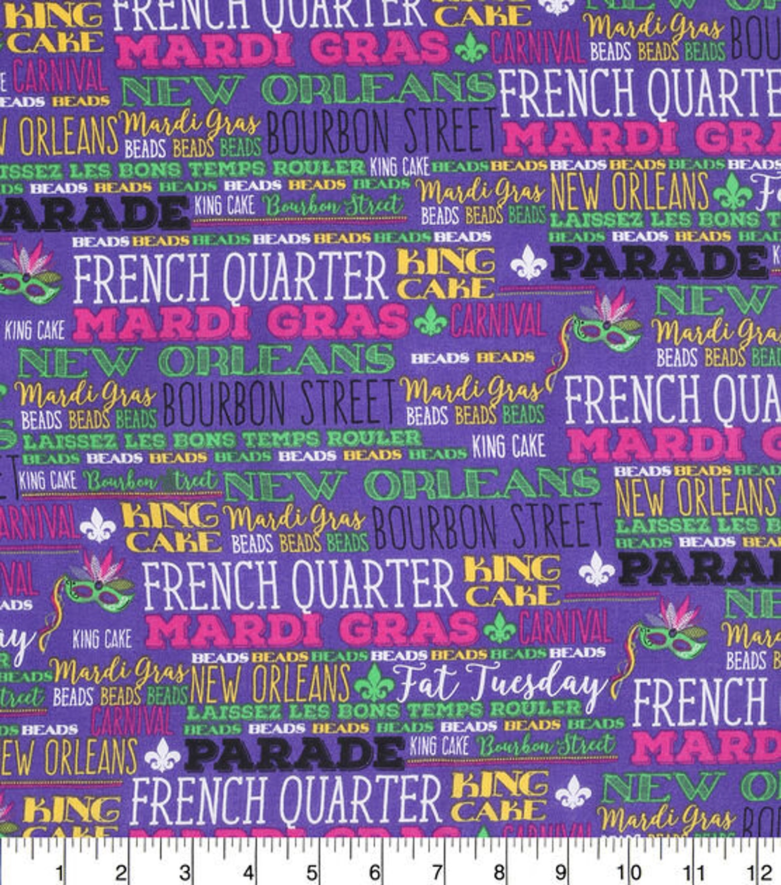 1/2 Yard Français Quarter Words Mardi Gras Cotton | Etsy